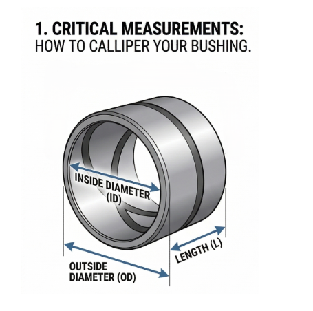 - Pro Tip: Measure in two or three different spots. If the bushing is worn, it may be “out-of-round” (oval-shaped). Use the largest measurement to determine the original size.